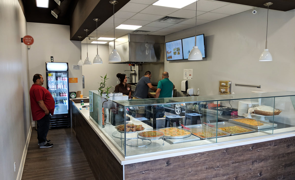 The problem with kunafa is the same problem with pizza; because of the melty cheese, it really has to be eaten when it’s relatively fresh out of the oven. As it sits out, the cheese starts to congeal and the pastry loses its moisture. You can reheat it (or leave it on a hot plate as they do here), but it really isn’t the same.