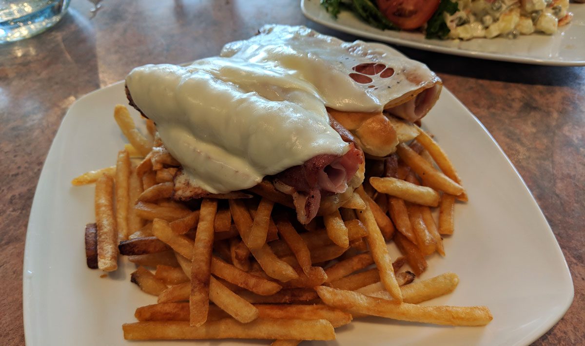The one they’re serving at La Pasiva wound up being almost exactly the same as the one I had at Comedor Popular Ecuatoriano.  It’s a relatively simple dish: steak and eggs, a salad, and potatoes (you can choose between potato salad and fries — I went with potato salad).